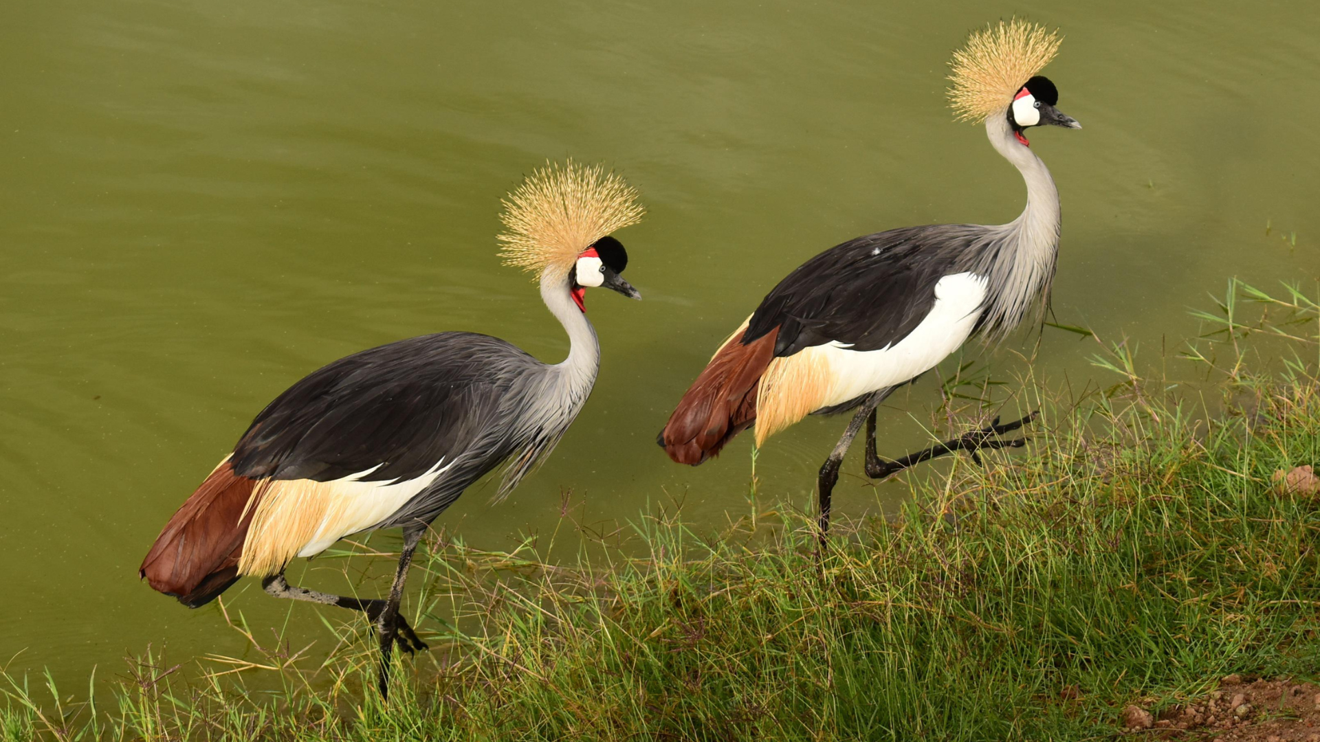 Drive along the banks of the park’s rivers, which are bursting with life thanks to a treasure trove of birds from vibrant sunbirds and lanky ostriches to magnificent crowned cranes putting on spectacular courtship displays.